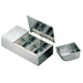 Introducing the Ebm Stainless Steel Yakumi Seasoning Container - 4 Compartments, a must-have for any restaurant kitchen. Crafted from durable 18-8 stainless steel, this container is rust-resistant and hygienic. The hinged lid ensures you never lose or misplace it. With its sloped inner box, removing condiments is a breeze. Keep it in top shape by washing and drying it thoroughly after use. Ebematsu Co., Ltd is a trusted name in kitchen tools, offering a wide range of products for both home and professional use. Elevate your culinary experience with this high-quality seasoning container.